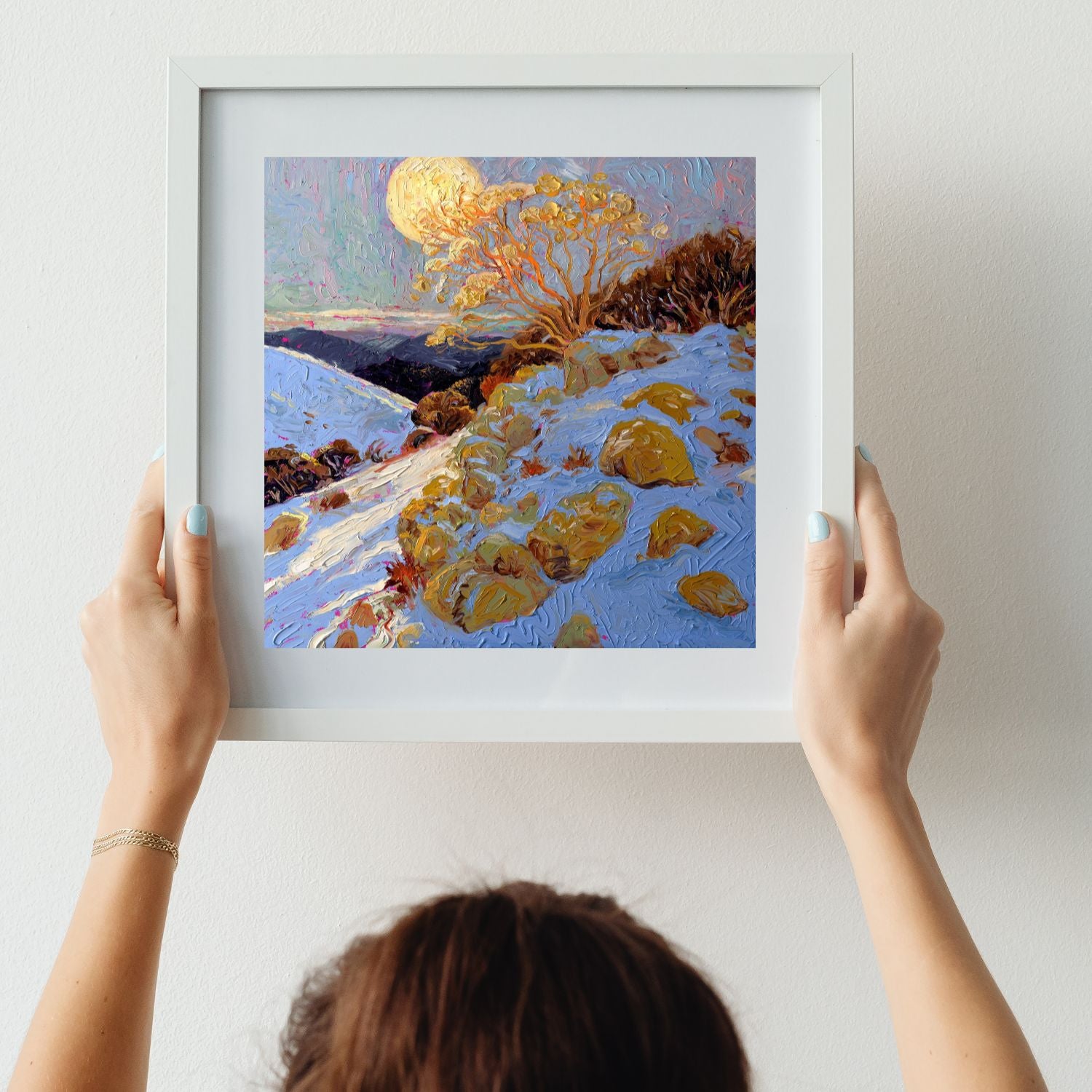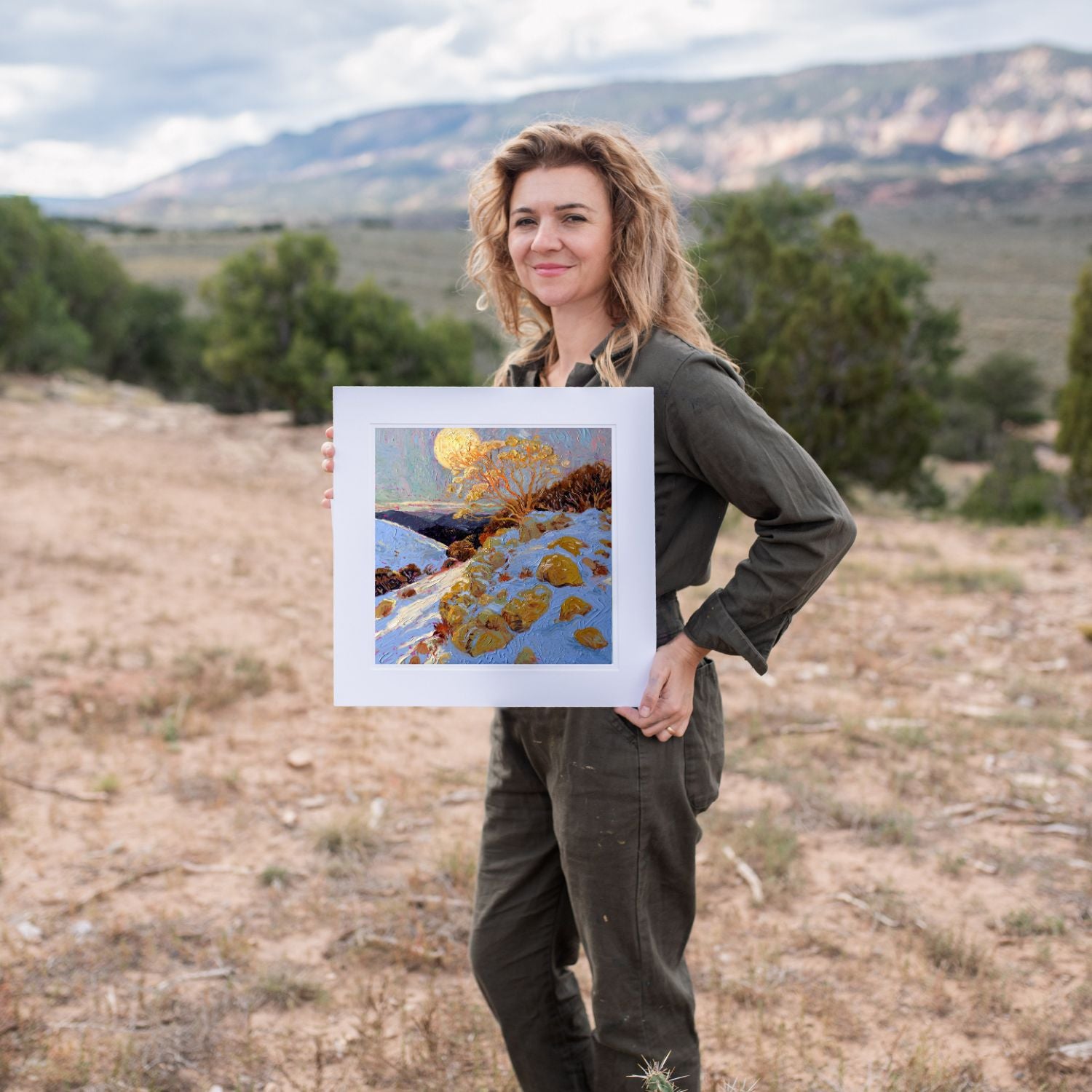 Iris Scott’s 12x12-inch paper prints are crafted on bright white, matte fine art paper made from 100% cotton fiber, offering a luxurious feel and exceptional longevity. Archival-grade and designed to remain vibrant for over a century, each print delivers museum-quality reproduction with remarkable color depth and crisp detail, capturing every nuance of Iris’s original artwork. Your print arrives ready to frame—perfectly sized for a 16x16" or 18x18" frame with a mat.