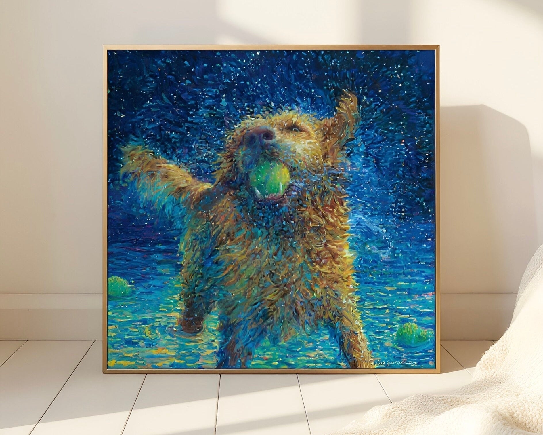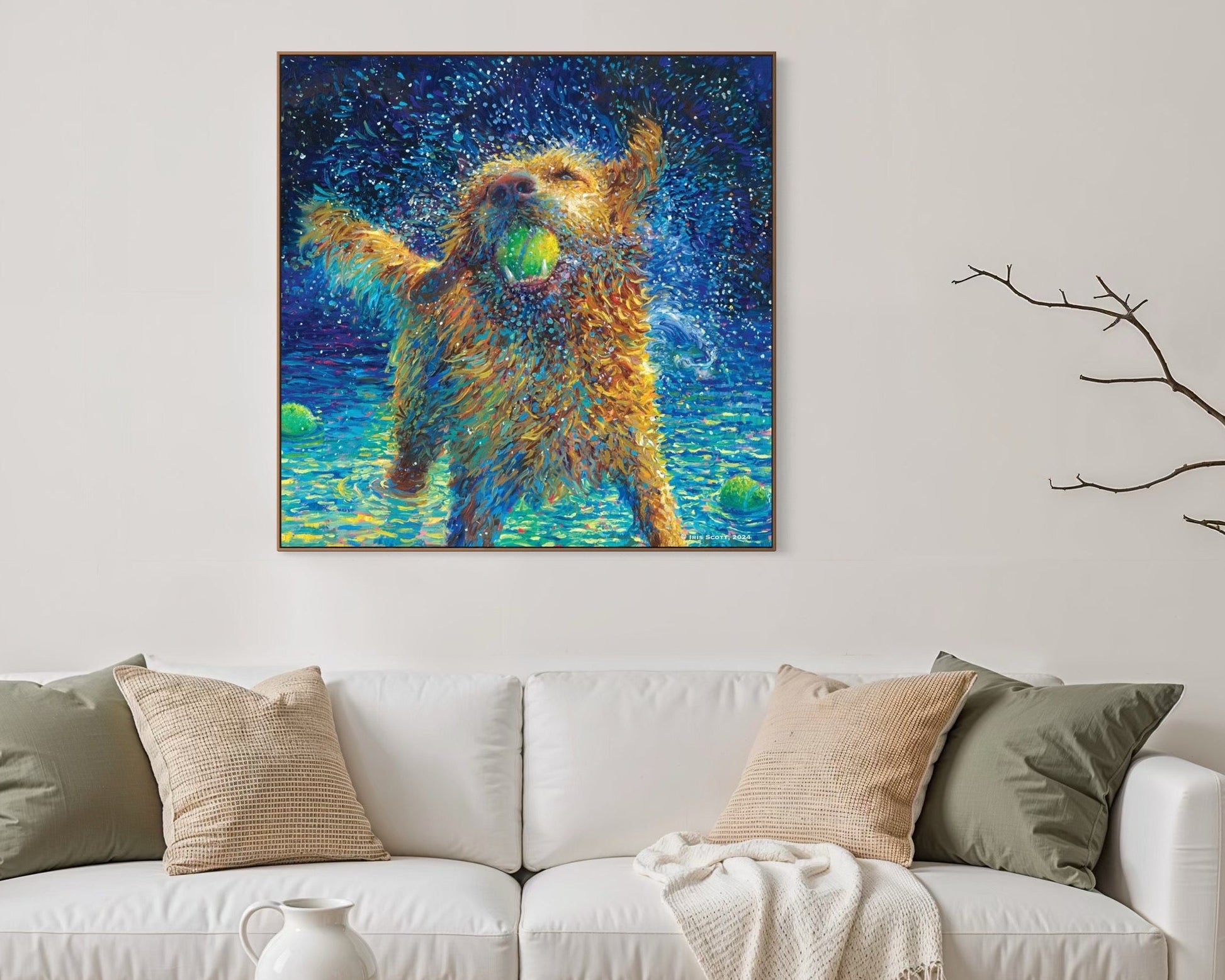 Prints arrive stretched and ready-to-hang on 1.5-inch deep wooden stretcher bars. Hardware is included.