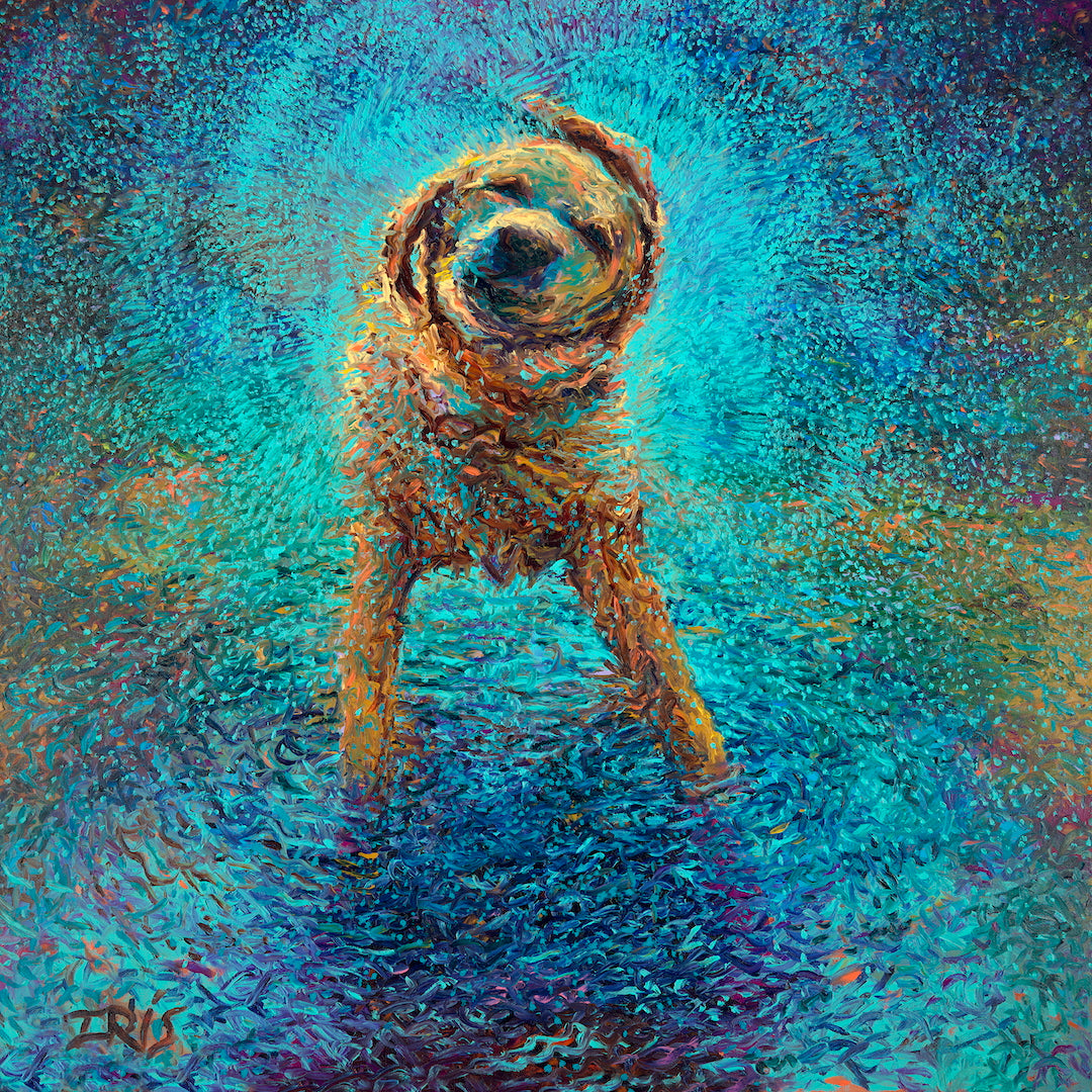 Limited Edition Embellished Giclée Canvases are now available for fine art collectors. Iris Scott paints onto the surface of the print with hundreds of dabs of thick texture and color to create a unique print. The artwork includes a signed and numbered certificate of authenticity, and each image is restricted to just 20 embellished prints. USA orders arrive stretched and ready-to-hang on 1.5 inch depth wooden stretcher bars. Hardware included. Please Note: All Limited Editions shipped outside the USA will ship rolled, and should be stretched at your local frame shop.