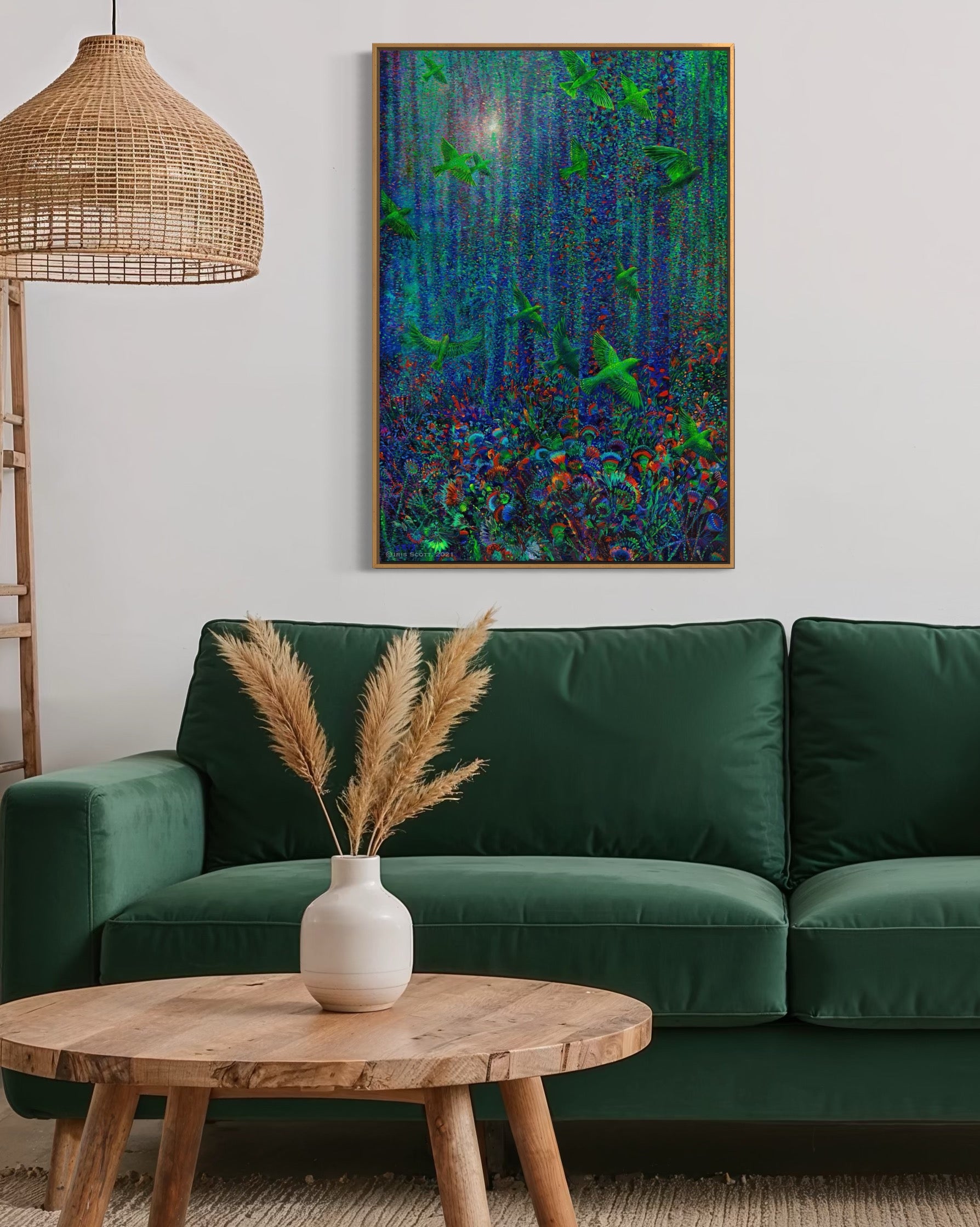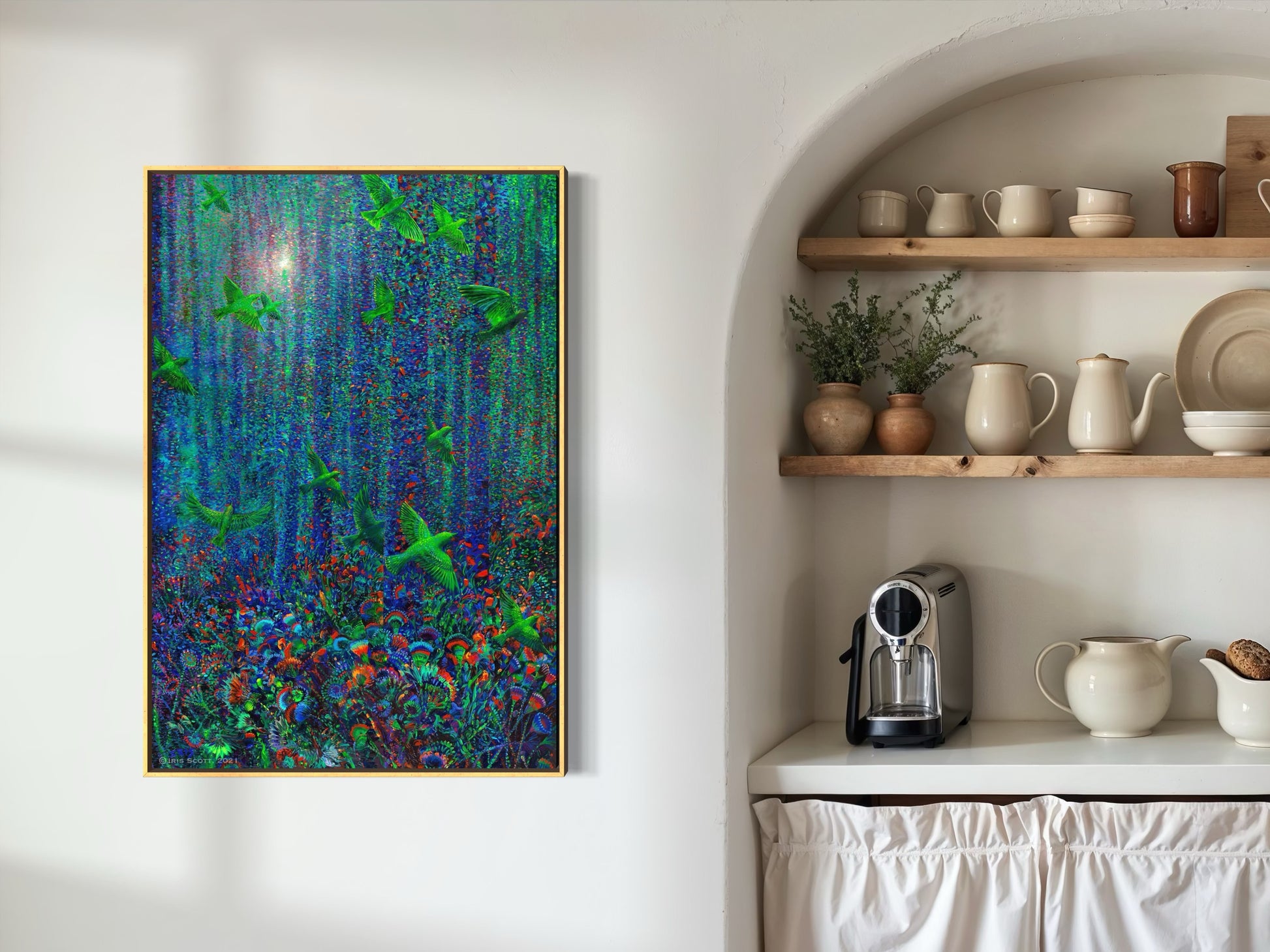 Our standard canvases are printed with premium inks from ultra-high-resolution scans of Iris Scott’s original oil paintings. Each print features the artwork wrapped around the sides for a gallery-quality presentation.