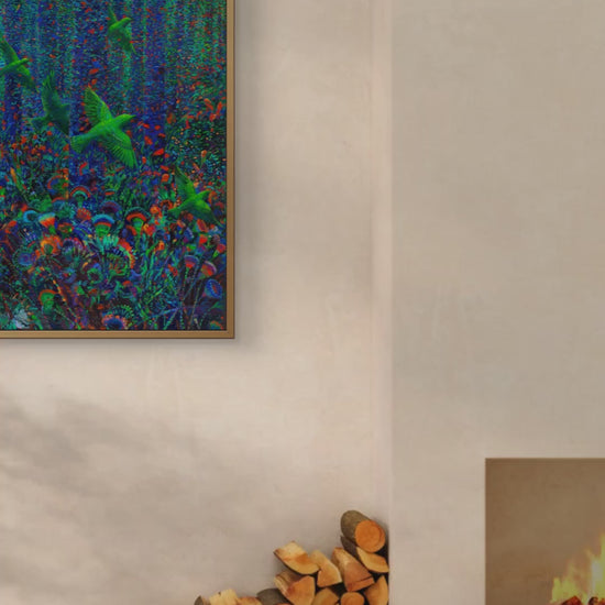Prints arrive stretched and ready-to-hang on 1.5-inch deep wooden stretcher bars. Hardware is included.