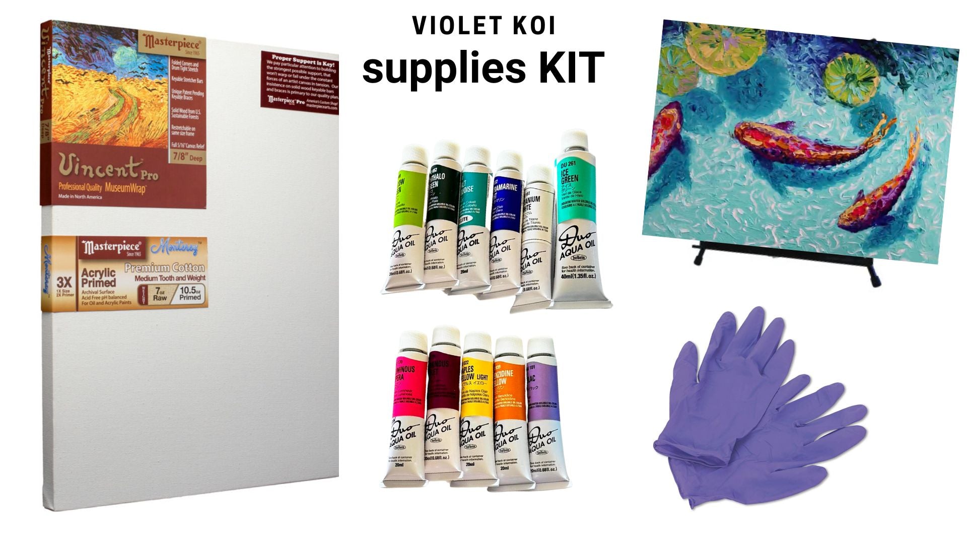 Skip the hassle of gathering materials—this complete kit has everything you need to follow along. It includes a Masterpiece 16x20 inch cotton canvas, a table easel, nitrile gloves, and 11 Holbein Duo oil colors: Ultramarine Light, Cobalt Turquoise, Ice Green, Phthalo Green, Yellow Green, Naples Yellow, Benzidine Yellow, Lilac, Luminous Violet, Luminous Opera, and Titanium White.